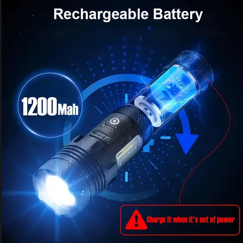 High Power Rechargeable Flashlight Ultra Powerful Led Torch Light Built-in Battery Tactical Flashlight For Outdoor Camping